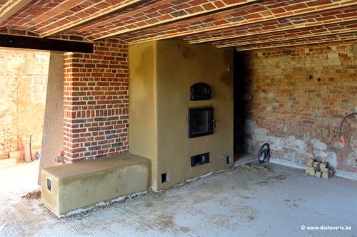 Ce client a acheté une grange sur la place du village de Prisches (FR. Avesnois) avec une vue incomparable sur les prairies et les champs. Le bâtiment a été aménagé avec goût, isolé et rénové avec des matériaux naturels. Les larges baies vitrées semblent encadrer le paysage et sont bien pensées pour faire entrer les rayons hivernaux du soleil et profiter ainsi au maximum de l'énergie solaire... Le poêle de masse Finoven 48 s'intégrait donc parfaitement au concept de rénovation écologique, pour chauffer agréablement et économiquement l'ensemble de la future maison. J'espère vous faire découvrir cette réalisation achevée le plus tôt possible car celle-ci deviendra le visuel emblématique d’Ecopoêle que vous aurez l’occasion de retrouver, je l’espère bientôt, dans les magazines spécialisés